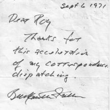 A friend introduced me to Bucky and I was lucky to spend a fair amount of time with him over the next several years. He was a major influence on my life. He taught me to not always accept the obvious, but to take a step back and look at things from a different perspective. Thank you Bucky.
